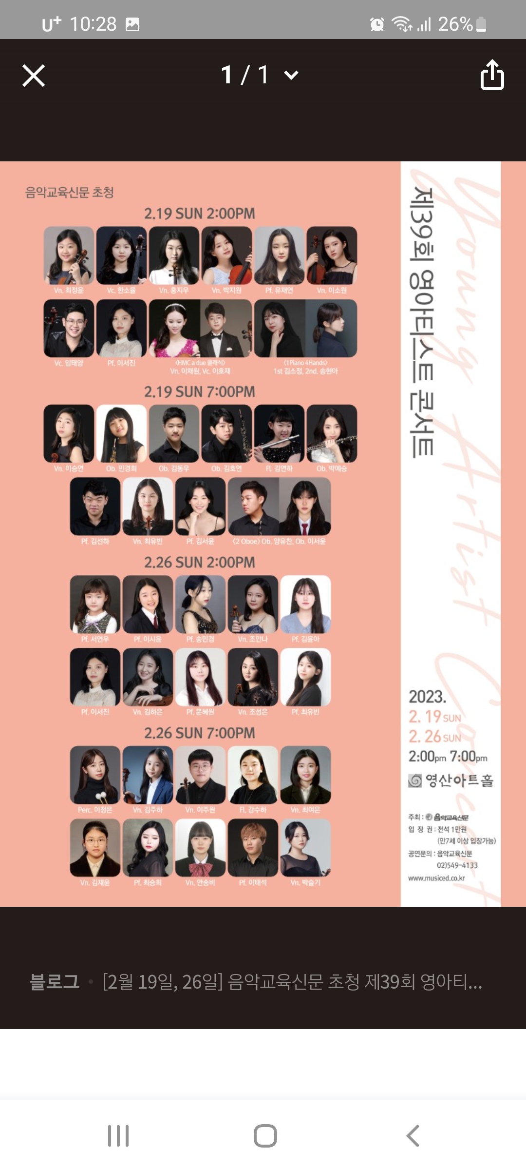 음악교육신문사 초청 영아티스트콘서트 제자 강수하