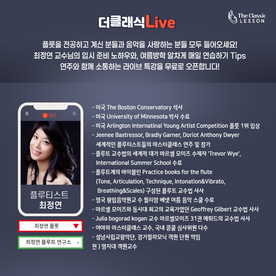 최정연교수님의 예중,예고,음대, 플룻입시 특강