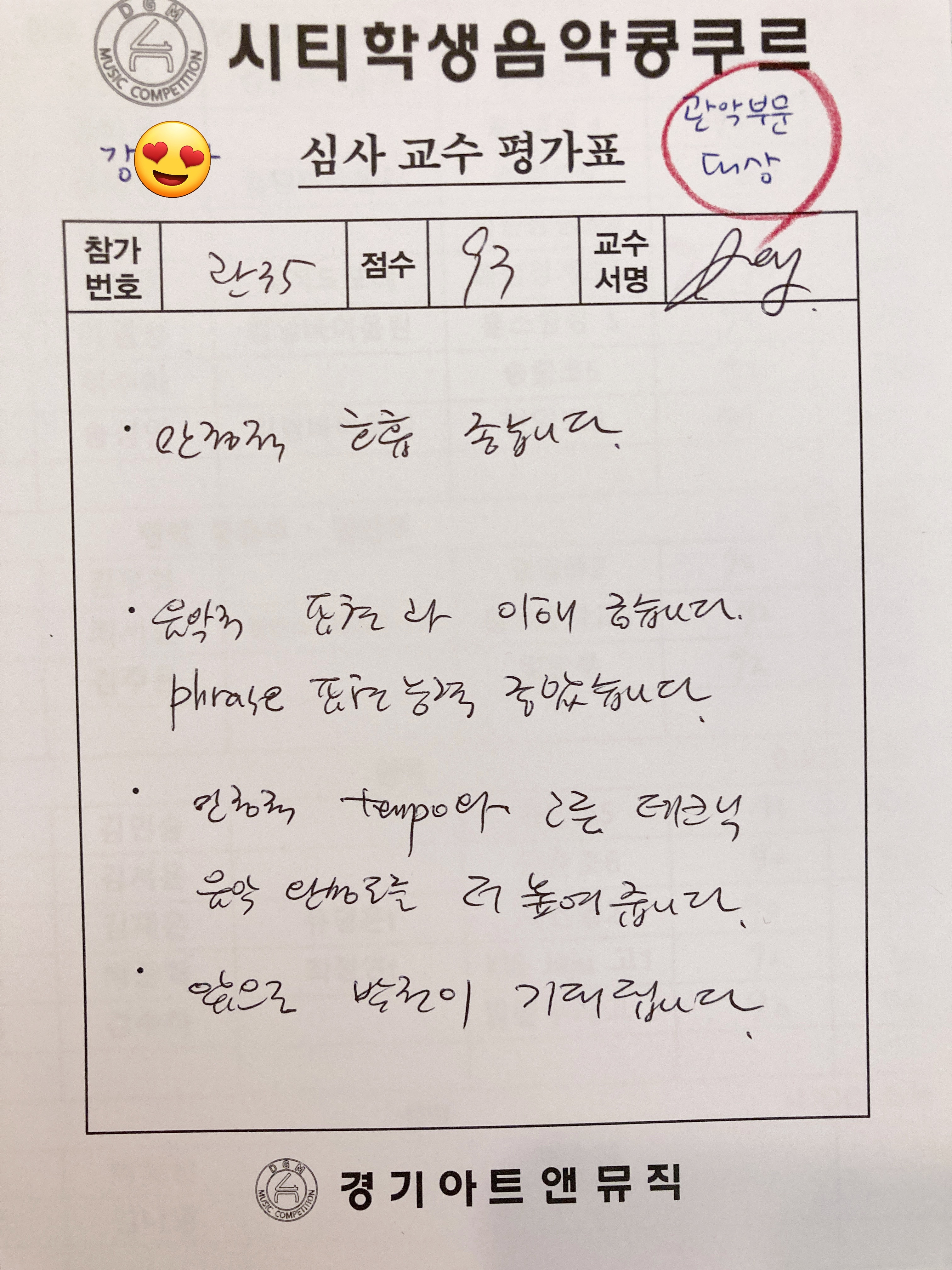 시티음악콩쿨플루트부문 고등부대상,준대상 강00,박00 학생